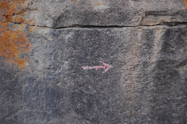 En av alla pilar som visade vägen genom ravinerna. Följde dem när jag trodde att de pekade åt den riktning som jag ville ta.